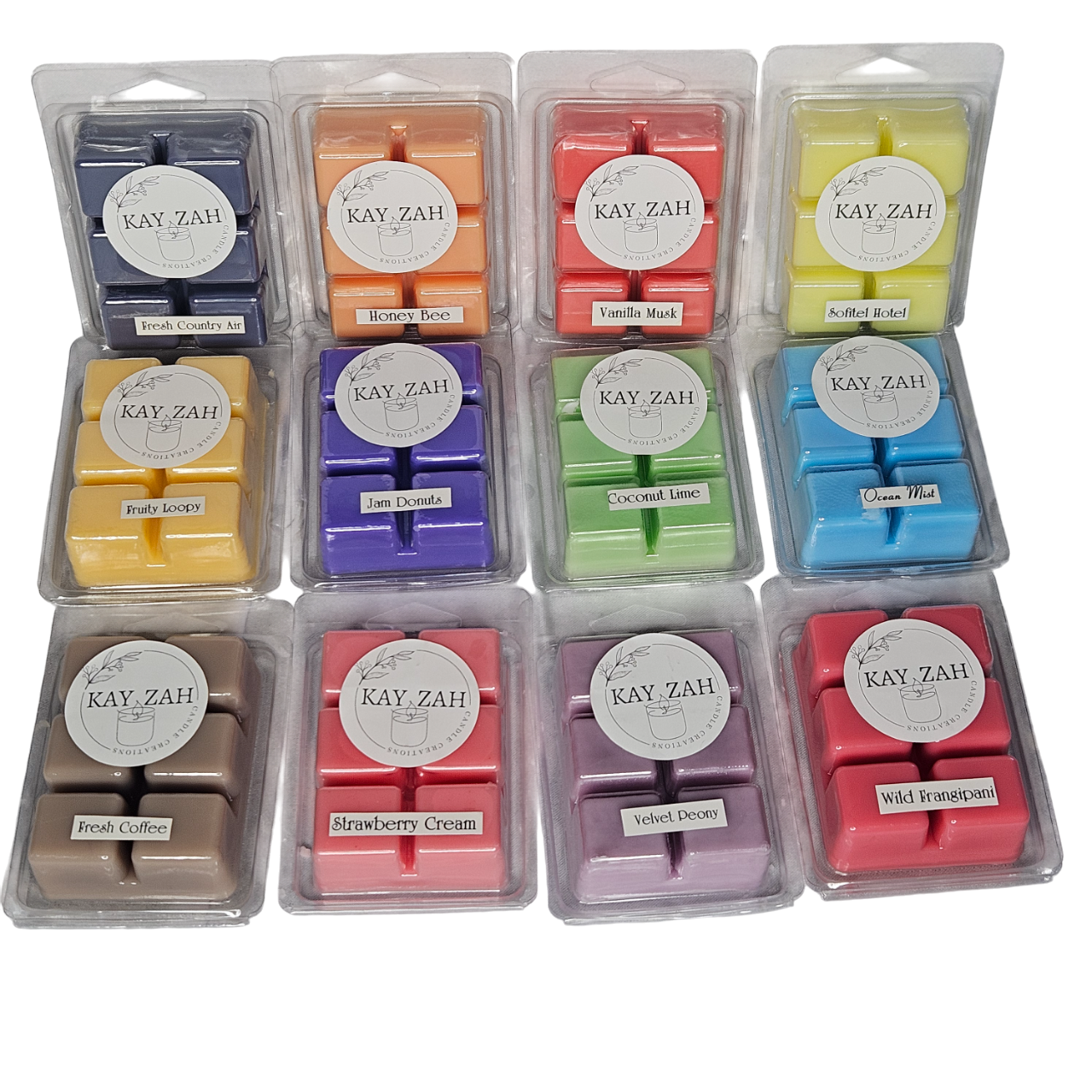 | Scents | Coconut & Lime, Strawberries and Cream, Ocean Mist, Velvet Peony, Sofitel Hotel, Honey Bee, Fresh Coffee, Wild Frangipani, Vanilla Musk, Fresh Country Air, Fruity Loopy, Jam Donuts |