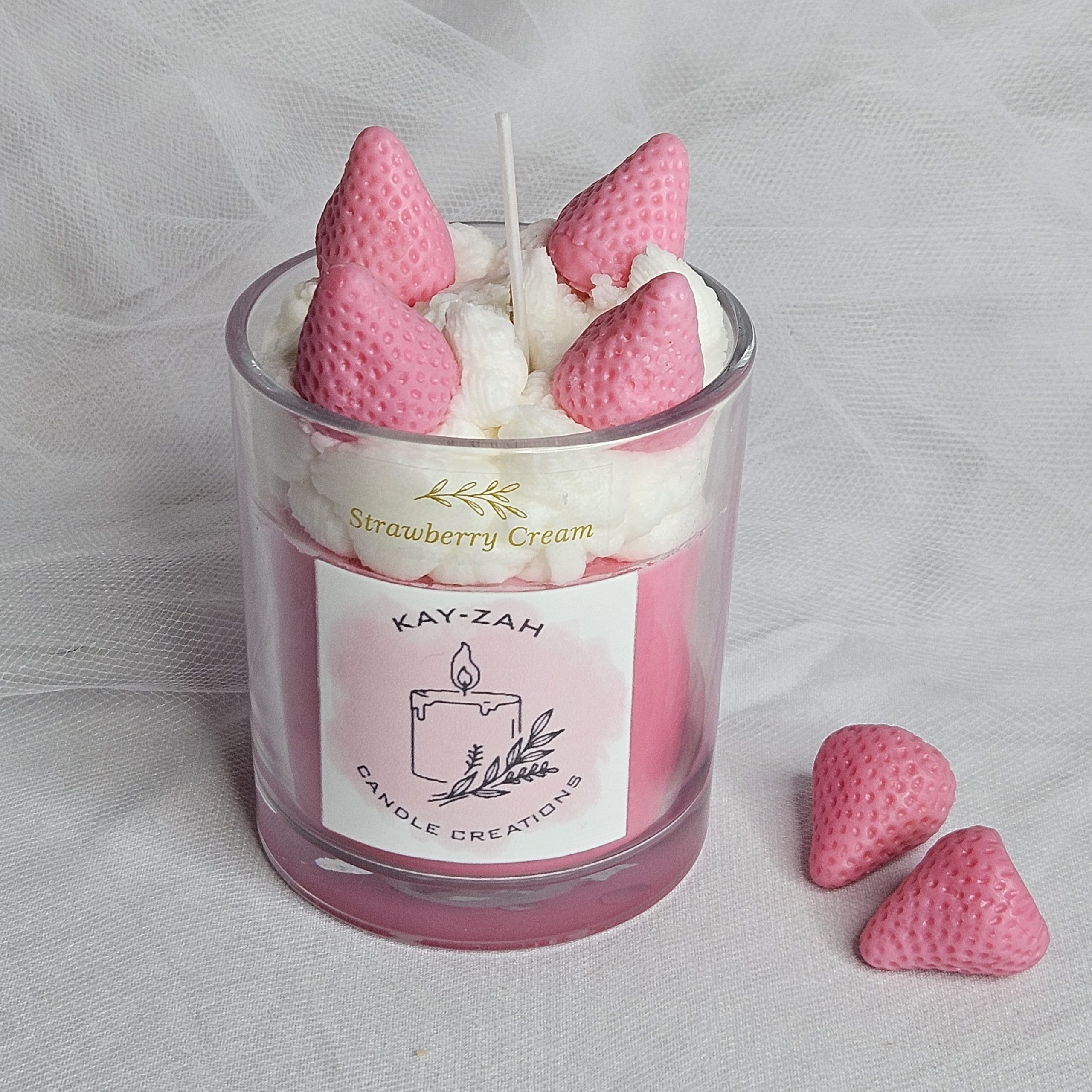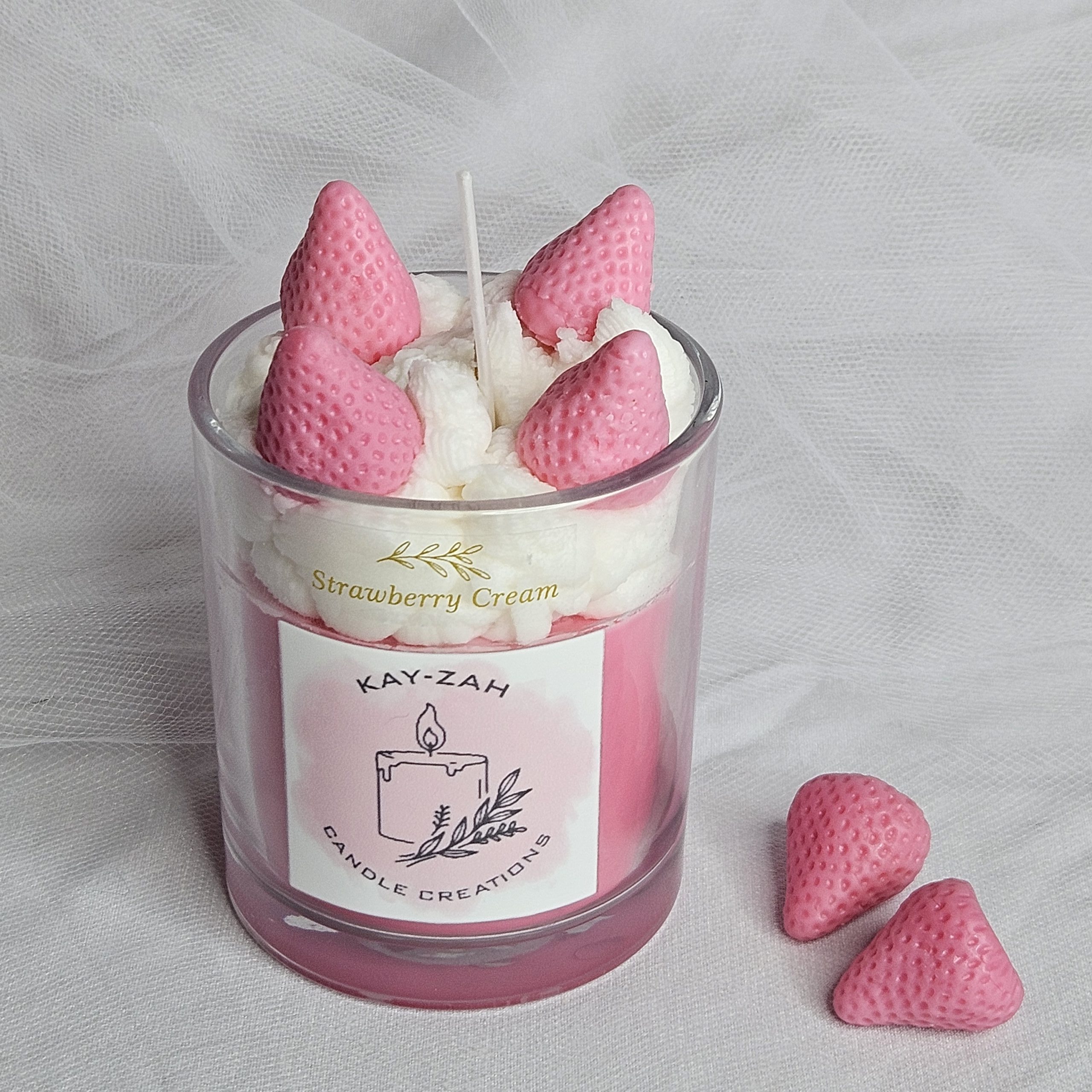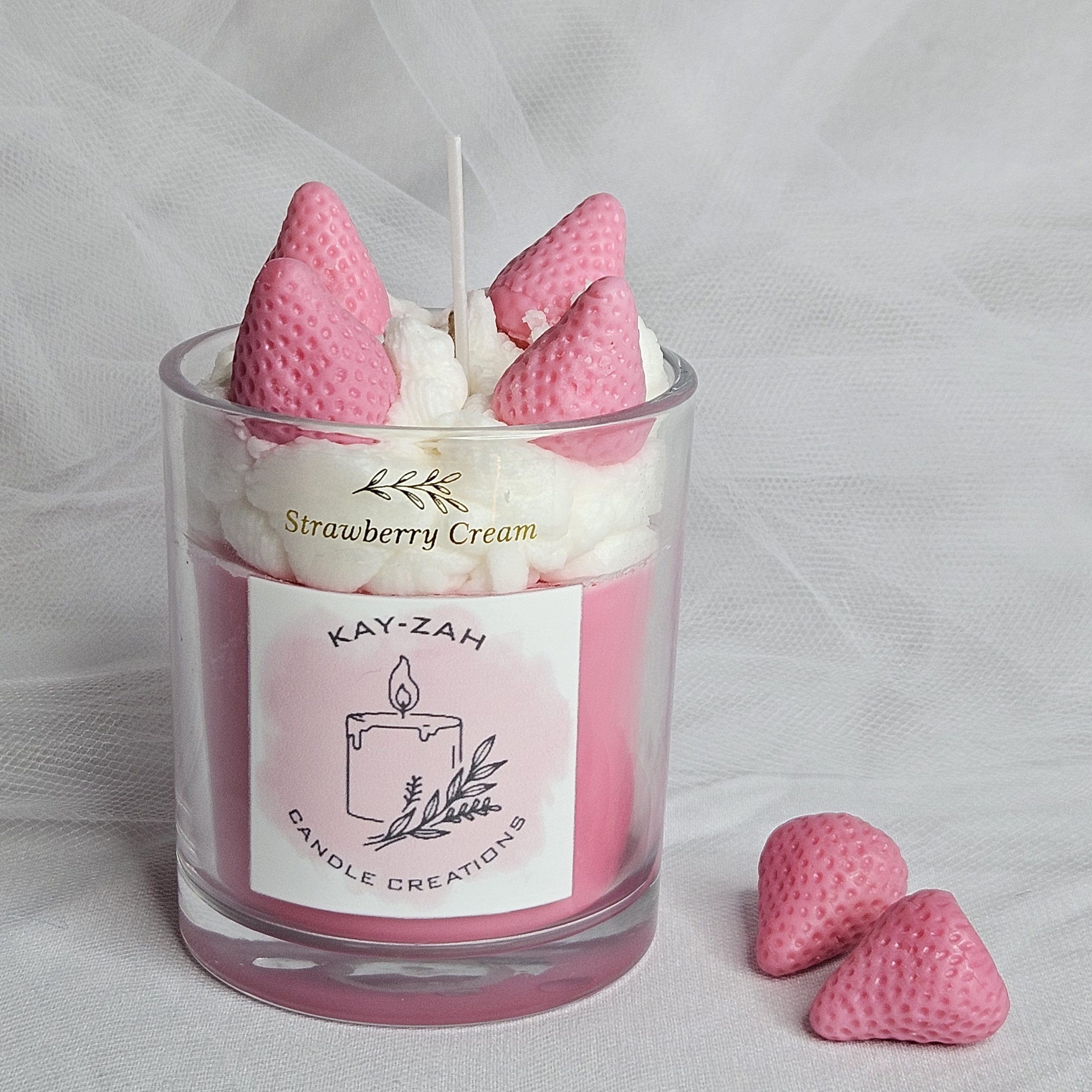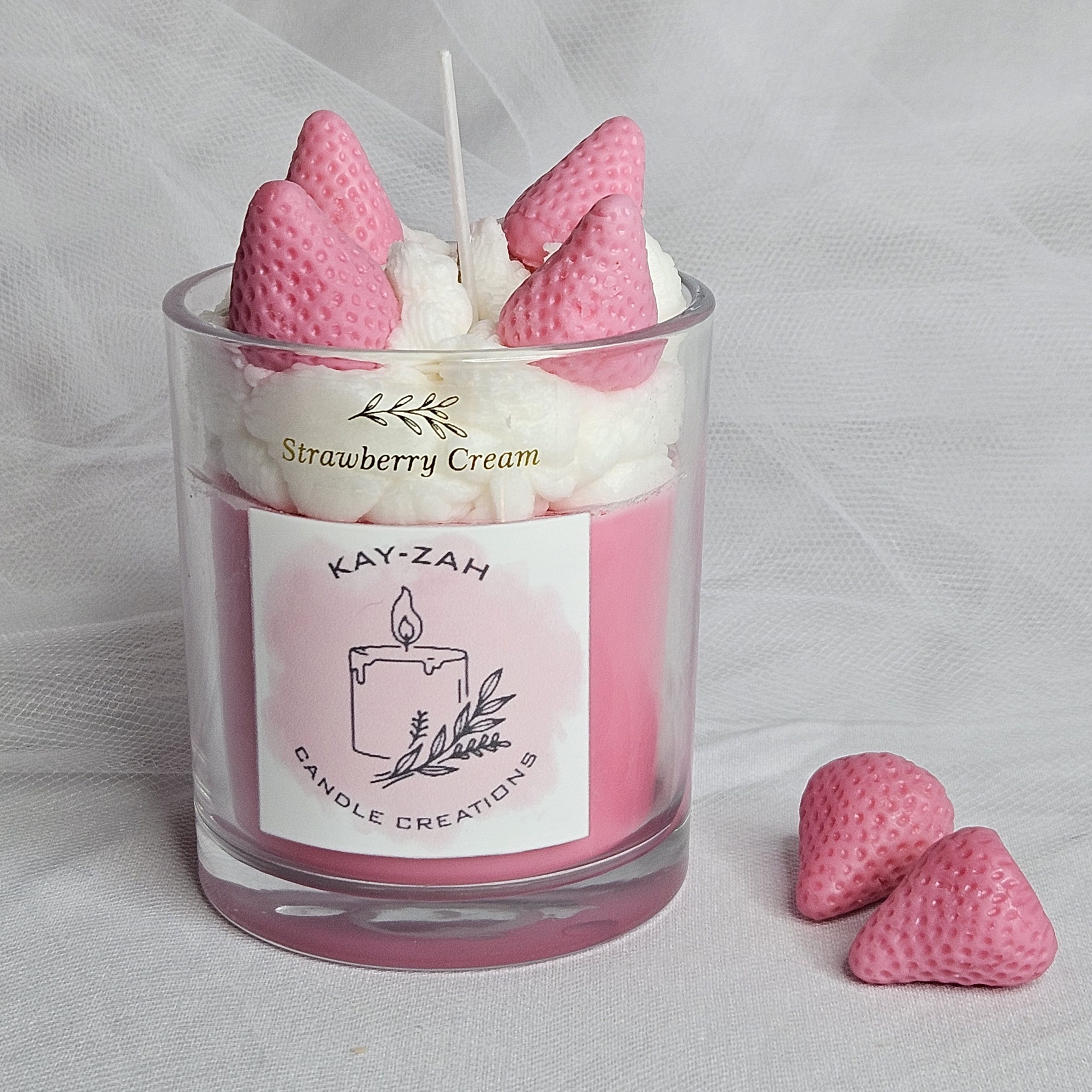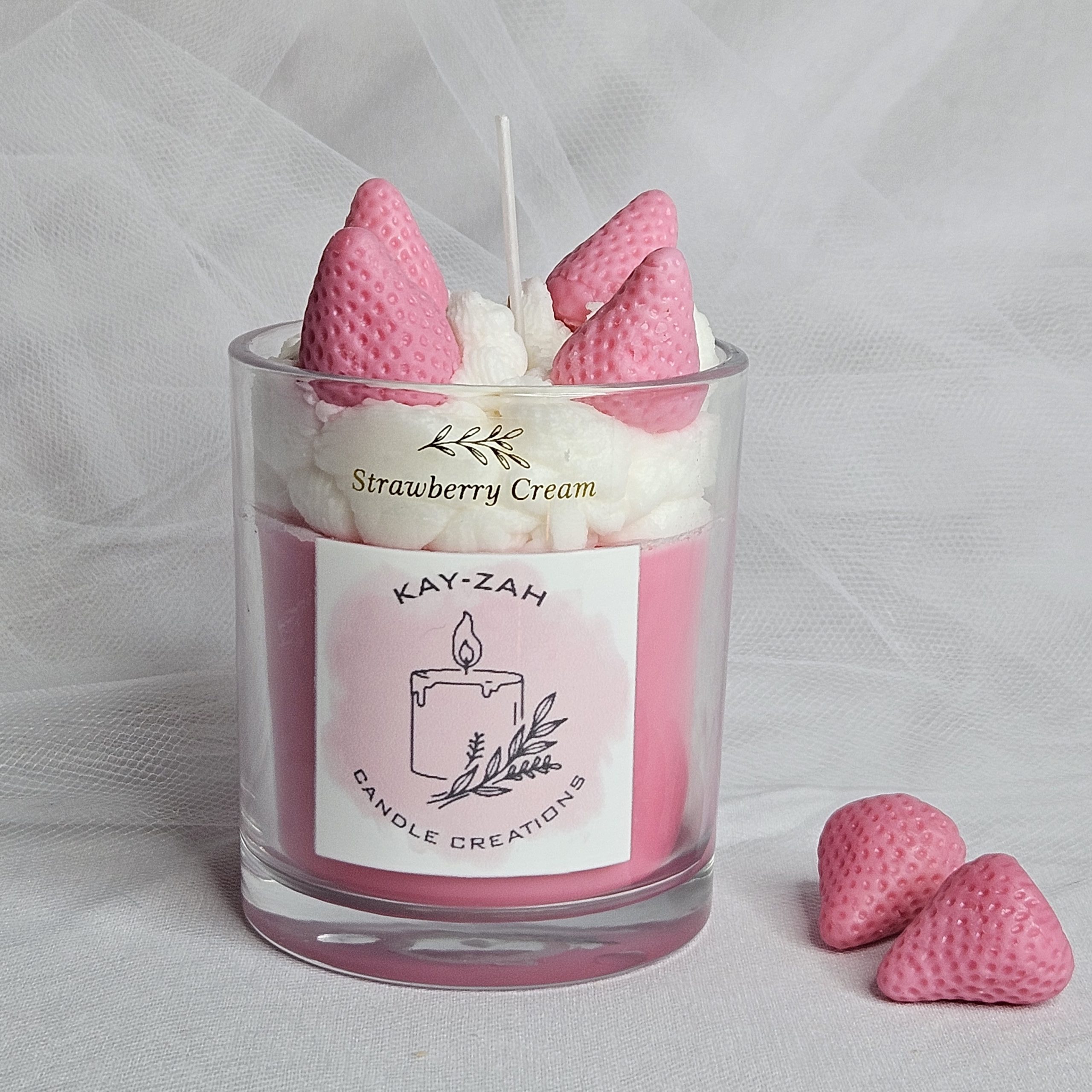 One of our favourites, Strawberry Cream soy blend topped with Sweet Strawberry melts. Whipped Cream decoration. Combining the sweet, fruity aroma of ripe strawberries with a rich creamy scent of vanilla and whipped cream. Indulgent and a comforting scent, reminiscent of a classic dessert.